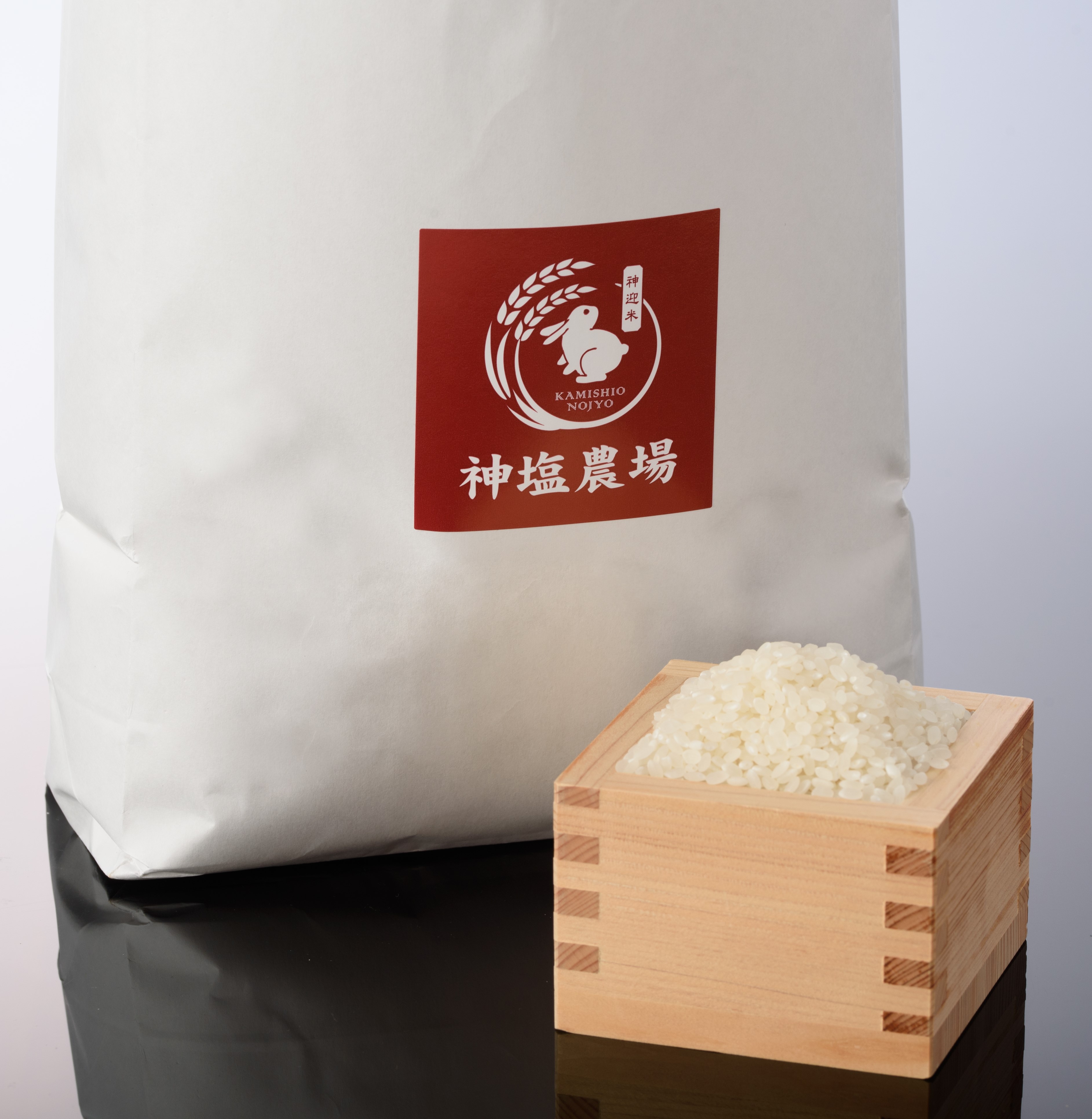ニガリ栽培(きぬむすめ)の「神迎米」。